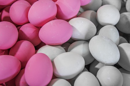 Traditional Easter Portuguese candies. White and pink sweets on pastel pink background