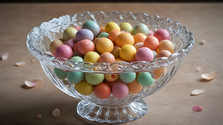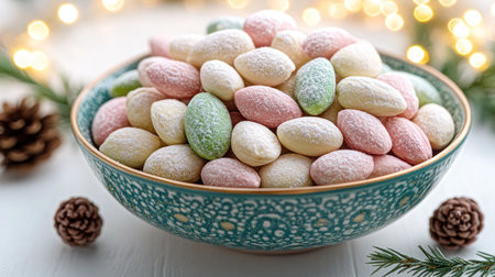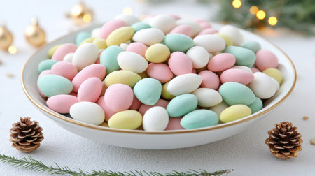 Sweet pastel candies fill a beautiful bowl creating a joyful scene for celebrations