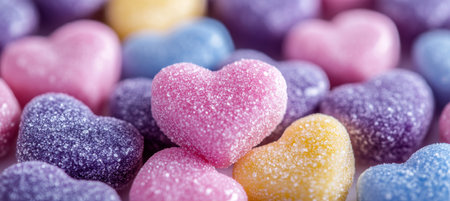 Close-Up of Pastel Heart-Shaped Candies, Sugary Texture and Colorful Palette, Valentine s Day Treat