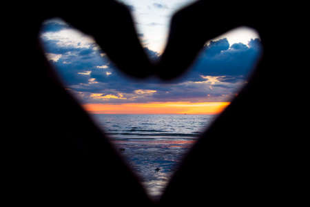 I let a friend take a picture The orange sun is falling on the edge of the sea.