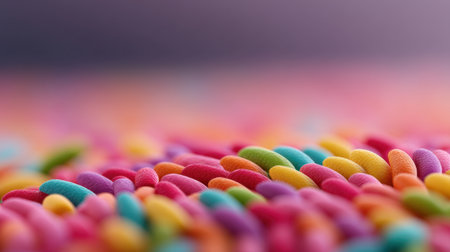 A mouth-watering view of colorful sugar candies creates an inviting atmosphere. The soft focus adds depth, making it perfect for dessert-themed projects and sweet mood imagery.