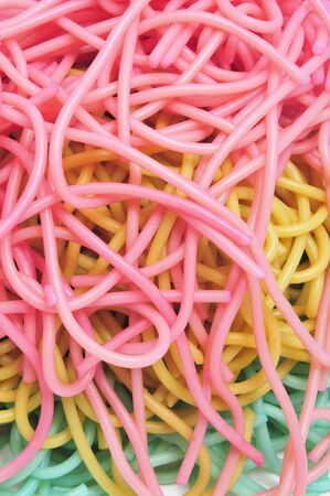 Colorful jelly candies in the form of worms, candy background.