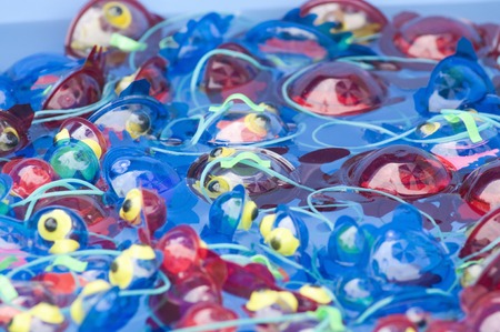 Fishing in the paddling pool. Children's toys in the pool. Toy fish fishing rod. Cheerful children fishing, fishing in the paddling pool.