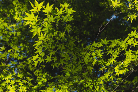 Beautiful green leaves of the oriental maple tree growing in the park.