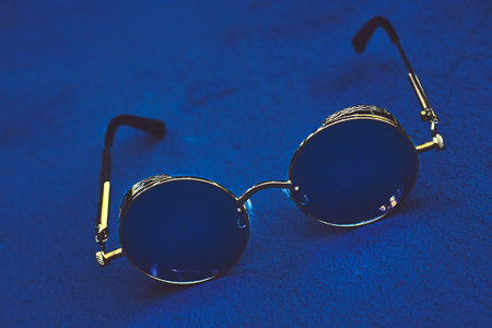 Modern sunglasses on colorful background with copy space. Product photograph with room for text.