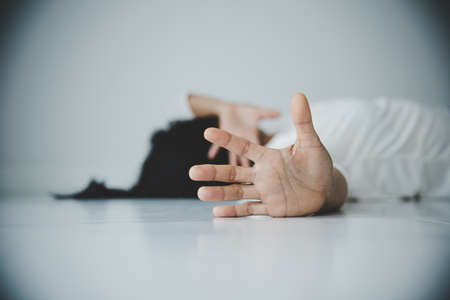 Young depressed woman, domestic and rape violence, beaten and raped on floor