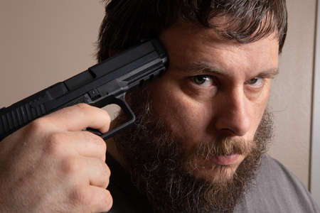 Sad women who are thinking about suicide committed by guns. Social problems concept.