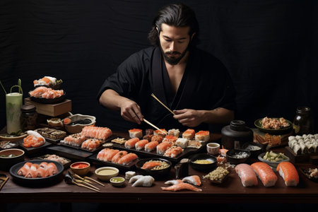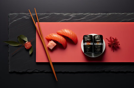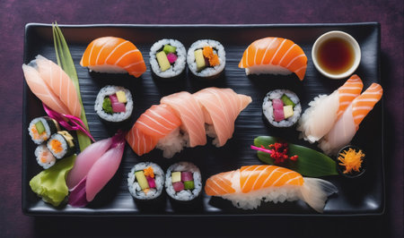 A Fresh sushi on traditional dish with vibrant colors and textures