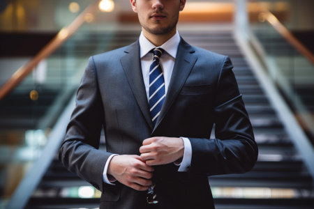 Someone who plays the role of a businessman, he is fixing his clothes