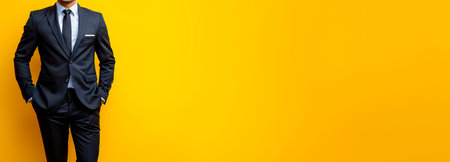 Businessman in a suit on a yellow background. Business concept.