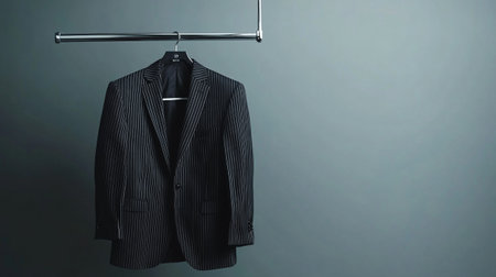 Sophisticated men suits displayed on hangers, creating a stylish atmosphere in a clothing store, perfect for formal occasions and business attire