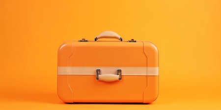 Orange travel suitcase, on orange background. Trip concept. Generative AI.