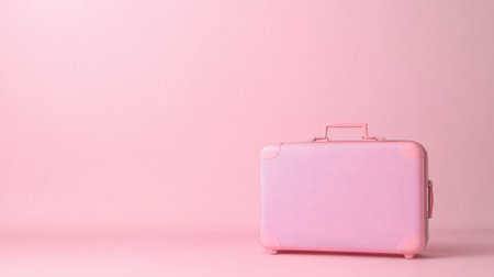 This elegant pink suitcase sits against a soft pink background, ideal for travel or fashion-themed photography. Perfect for evoking a sense of adventure.