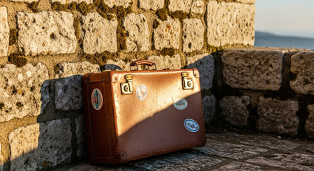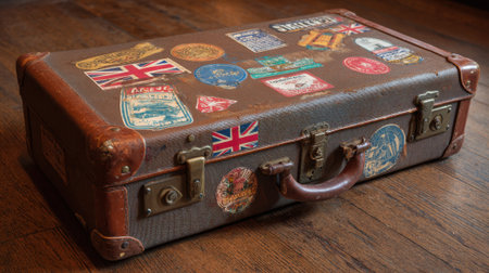 This vintage suitcase, adorned with colorful travel stickers, captures the essence of nostalgic journeys and adventures gone by.