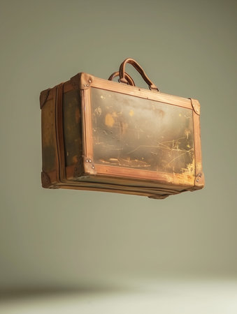 A vintage brown travel case sits against a bright blue background, embodying a sense of nostalgia and adventure, perfect for projects related to travel and classic style.
