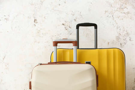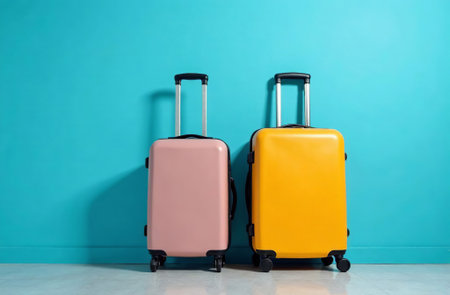 AI Generative Two luggage suitcases on wheels against wall, vacation