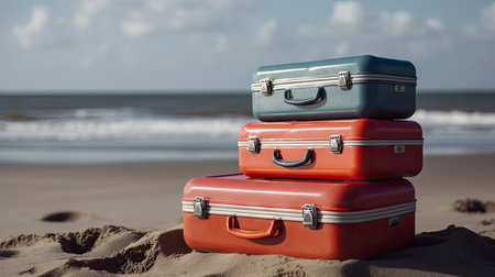 Packing your travel essentials in colorful suitcases, embark on a beachside adventure. AI Generated.