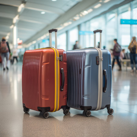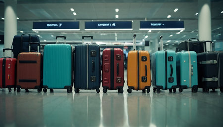 Travel in Style: Luggage and Suitcases at the Airport. Perfect for Vacation and Holiday Travel. Generative AI
