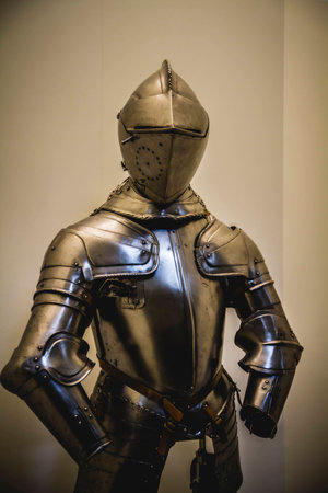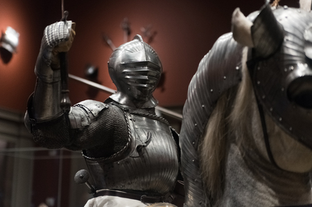 Close up of middle ages armor of the knight. Historic armoring used in combat battles.