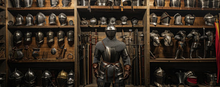 gold crown on a knights suit-of-armor in a castle, created with generative ai
