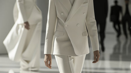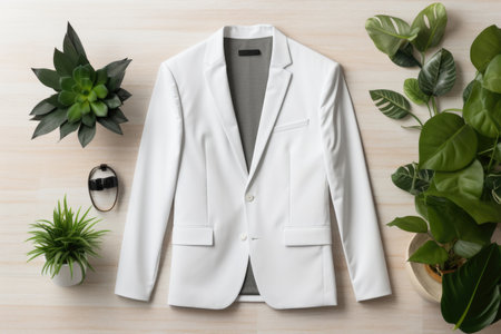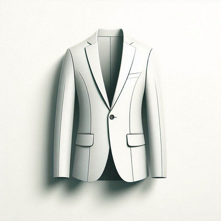 This image features an elegant white suit jacket elegantly placed on smooth fabric, showcasing a minimalist design in soft lighting, ideal for fashion-themed projects.