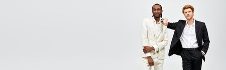 Classic Elegance in Monochrome: Stylish Men Sporting White Suits in a Studio Shoot --ar 3:2