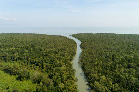 Amazing abundant mangrove forest Aerial view of forest trees Rainforest ecosystem and healthy environment background Texture of green trees forest top down High angle view
