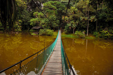The suspension bridge over the lake in the summer, Borneo, Sabah Malaysia