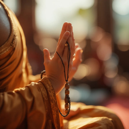 Religious Muslim people praying in the mosque. Ramadan celebration