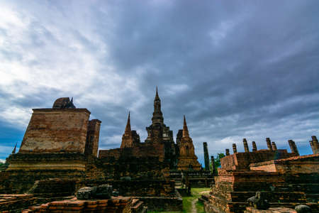 Wat Mahathat temple at Sukhothai historical park, the old town of Thailand in 800 years ago, Sukhothai Province, Thailand