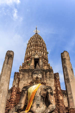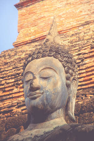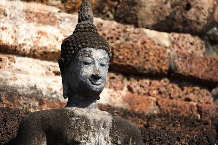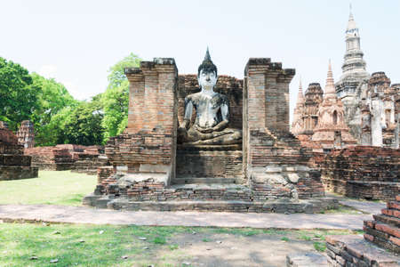 Sukhothai Historical Park, in Thailand. Ancient Buddha Statue at Mahathat Temple.
