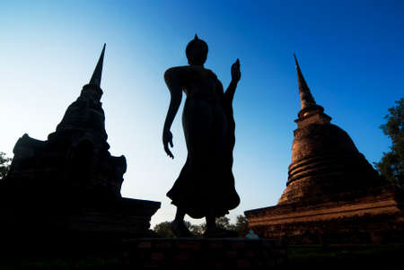 Silhouette Buddha Statue in Wat Mahathat Temple in Sukhothai Historical Park, Sukhothai Province, Thailand .