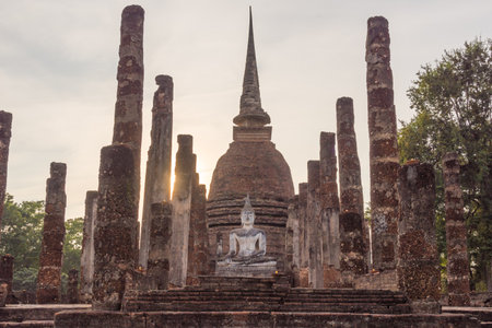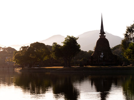 Beautiful sunrise at Sukhothai Historical Park, Thailand