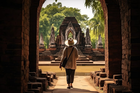 Photographing the Buddha Statue at Sukhothai, Thailand's temple ruins. GENERATE AI