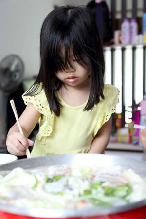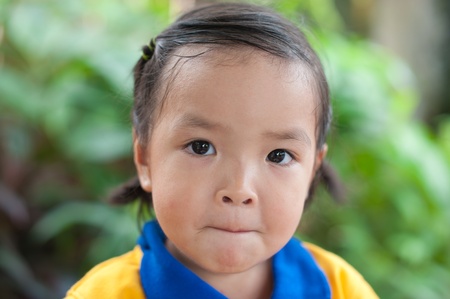 Asian child relax in holiday. Black hair happy and relax in holiday.