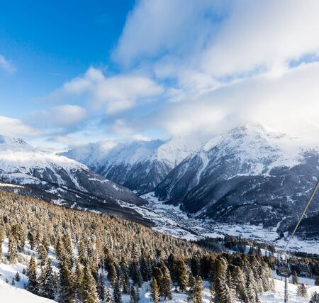 Winter scenics at the ski resort Soelden in the Pitztal valley in Austria.