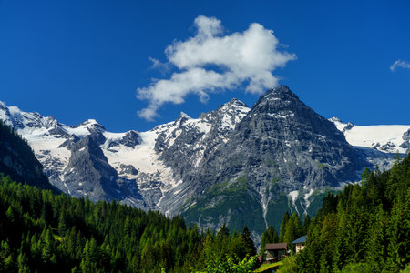 Mountain landscape along the road to Stelvio pass, Bolzano province, Trentino-Alto Adige, Italy, at summer