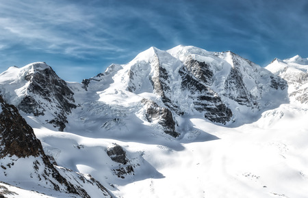 Bernina mountain range with Piz Bernina and Piz Rosegg. Engadin, Switzerland.