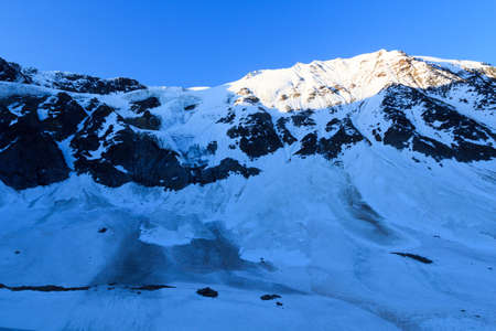 Mountain snow panorama and glacier Taschachferner in the morning at sunrise in Tyrol Alps, Austria