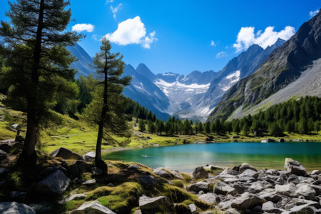 An AI generated illustration of majestic mountains revealing the majestic calm crisp beauty of nature