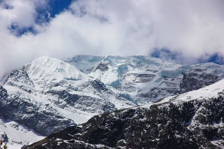 Snowy mountains of Nepal on a background of blue sky. sunny day