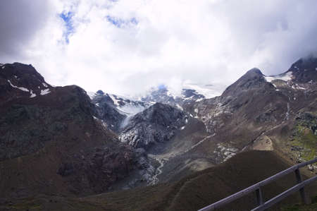 Clouds over snow-capped mountains and glaciers in the italian Alps