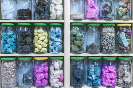 A laboratory filled with carefully labeled jars containing various minerals and elements as scientists yze their properties for any potential magnetic monopoles
