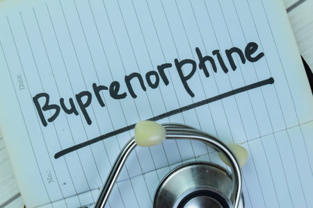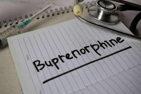 Buprenorphine write on a book and keyword isolated on Office Desk. Healthcare/Medical Concept