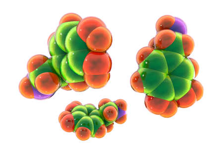 Mescaline molecule, a natural hallucinogenic substance present in the flesh of several cacti, 3D illustration
