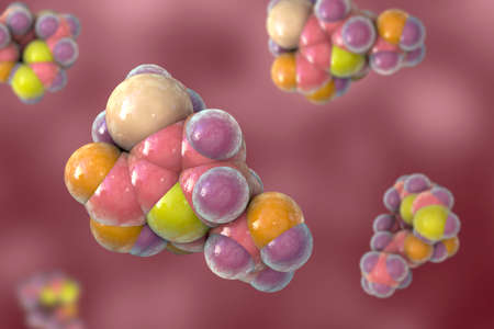 Dopamine molecule, 3D illustration. A neuromodulatory molecule, a neurotransmitter, is a key part of the brain neurophysiology, also used as a drug