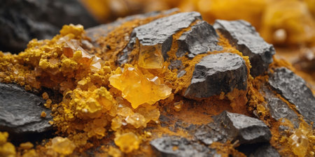 AI Generated. Close-up of vibrant yellow and orange mineral deposits