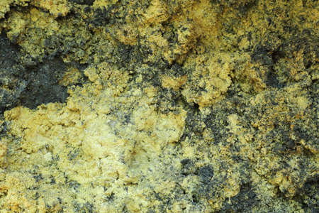 sulfur on stone, native yellow sulfur in nature, mineral structure on Elba Island, Tuscany, Italy