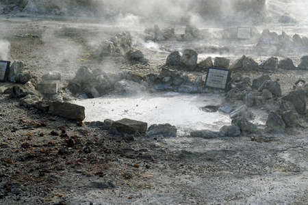 The fumarole of Tamagawa Onsen, the most highly acidic hot spring in Japan. Akita, Japan