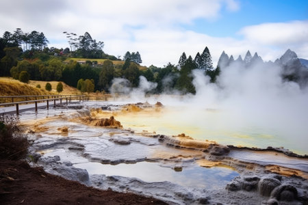 Waiotapu Thermal Reserve in New Zealand. Waiotapu is the largest hot spring in the world, Te Puia thermal park. Rotorua town, New Zealand, AI Generated